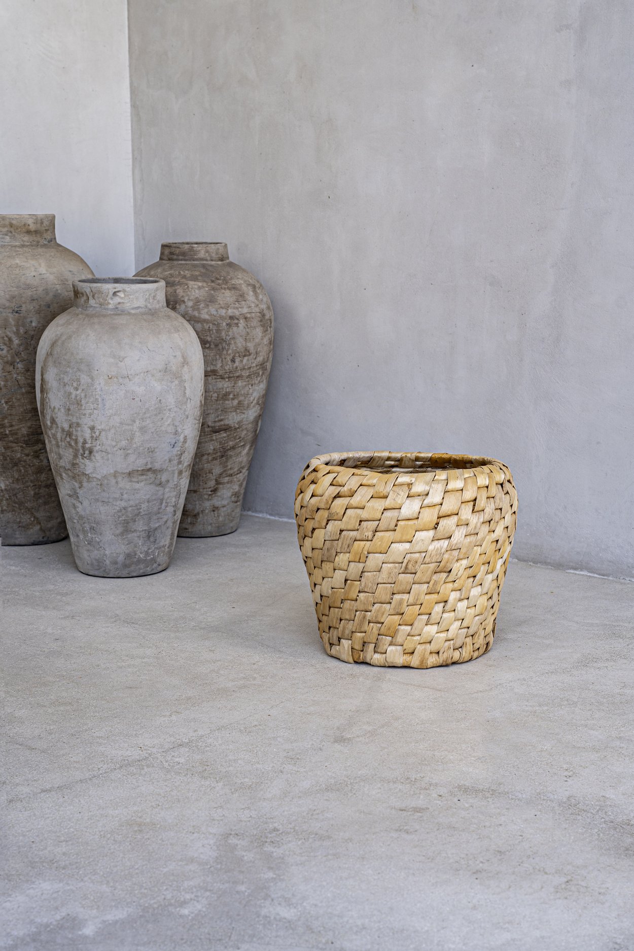 Deze originele mand van licht gekleurd bananenblad heeft een betoverend diagonaal patroon dat stijl geeft aan elke kamer. Het ronde silhouet biedt veelzijdige opslag en visueel plezier. De kunstzinnige mix van duurzame materialen en het verfijnde ontwerp maken van de Chidi-mand een pronkstuk dat zowel de functionaliteit als de esthetiek van je kamer verhoogt.