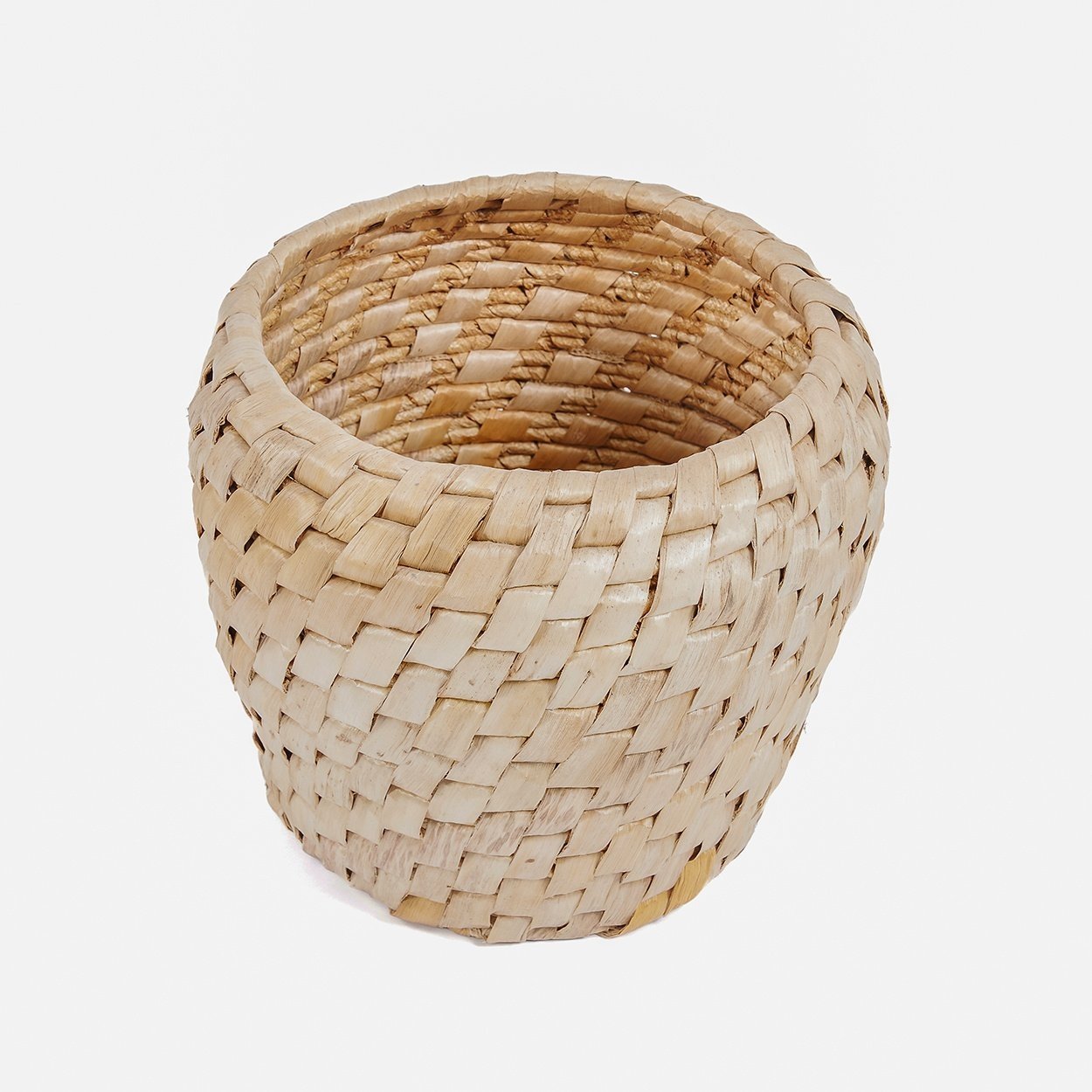 Deze originele mand van licht gekleurd bananenblad heeft een betoverend diagonaal patroon dat stijl geeft aan elke kamer. Het ronde silhouet biedt veelzijdige opslag en visueel plezier; Lees meer