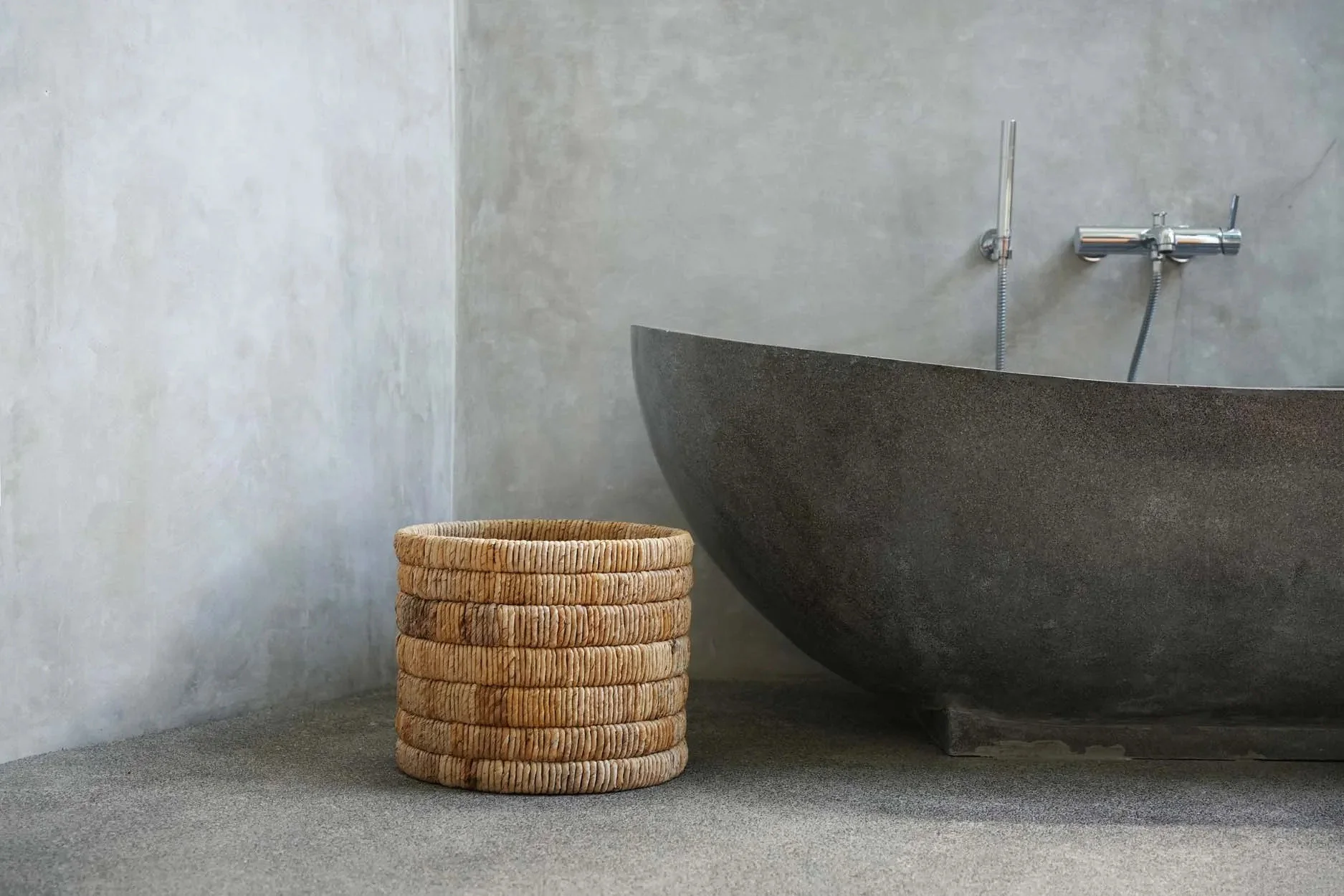 Deze fascinerende mand is handgeweven van bananenblad en heeft een vakkundig patroon van rijen en kolommen, waardoor textuur en detail op hoog niveau worden toegevoegd. De ronde vorm mengt op harmonieuze wijze traditionele kunstzinnigheid met hedendaags design en biedt een veelzijdige opbergoplossing die tegelijkertijd een prachtig decoratief stuk is. Ervaar de perfecte combinatie van functionaliteit en esthetiek met de Chuma-mand.