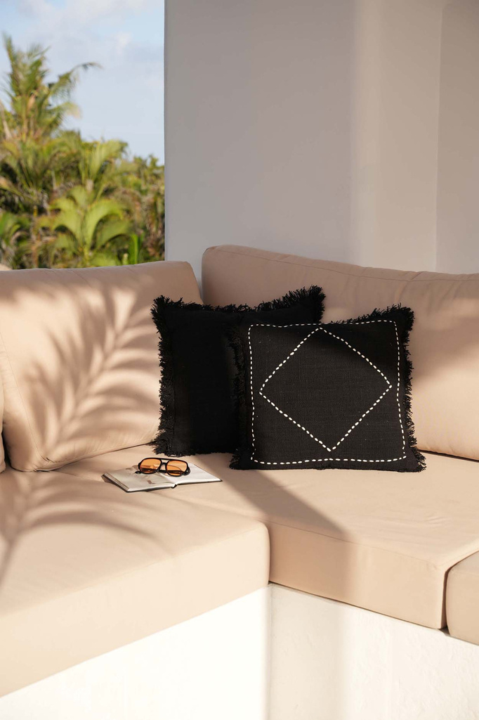 Vang de schoonheid van de nacht met de Full Moon zwarte kussensloop. Ontworpen om de betoverende gloed van een volle maan op te roepen, voegt deze katoenen kussensloop een vleugje verfijning toe aan elke ruimte.