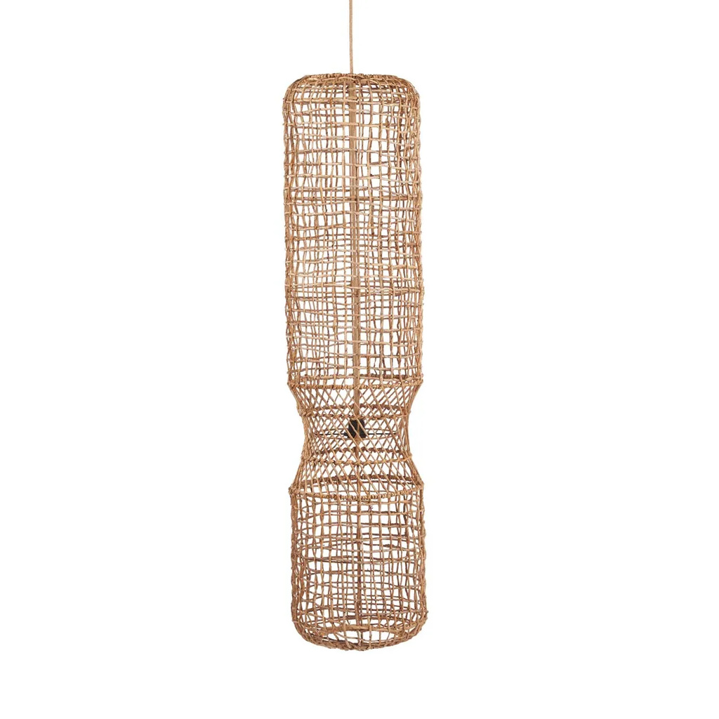De GuanYin Hanglamp, handgemaakt van bananenblad, voegt warmte en charme toe aan elke ruimte. Het ingewikkelde vlechtwerk en de natuurlijke textuur creëren een gezellige, uitnodigende sfeer, perfect voor je woonkamer, eethoek of slaapkamer. Als hij brandt, werpt deze hanger een zachte, gouden gloed die de kamer een vleugje organische elegantie geeft. Met zijn unieke ontwerp en aardse tinten is de GuanYin hanger een opvallend stuk dat een verscheidenheid aan interieurstijlen aanvult, van boho tot modern rustiek. Deze lampenkap heeft geen elektrische bedrading of stekkers. We verkopen deze fittingen los, zowel aan het plafond als met stekker. Kijk voor een fitting in onze shop en selecteer je gewenste look en type.